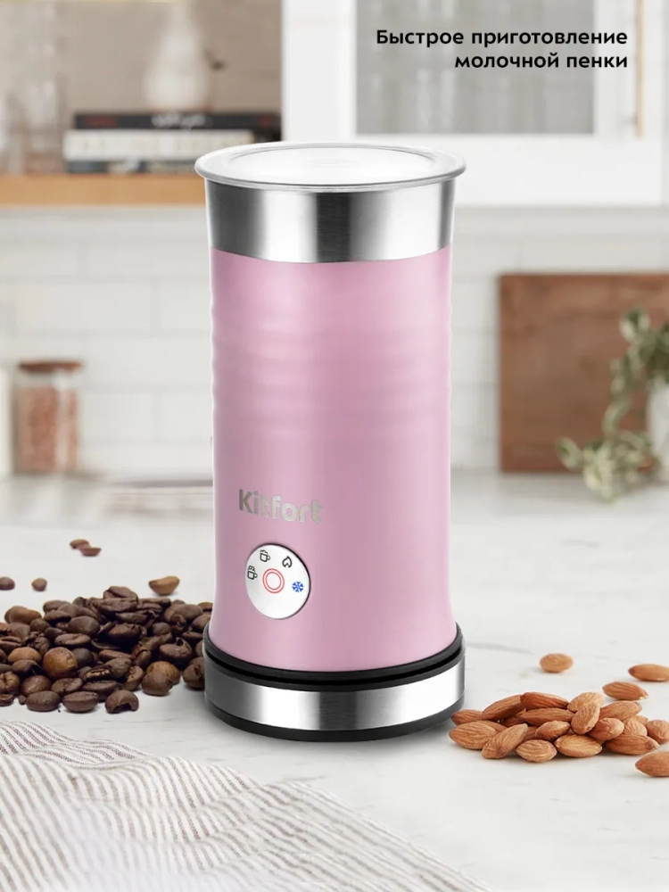 Капучинатор Китфорт КТ-786 - это устройство для приготовления молочной пенки, используемой для напитков на базе эспрессо: капучино, латте и латте макиато. Прибор работает в четырех режимах: вспенивание до густой пенки с подогревом, вспенивание до легкой пенки с подогревом, вспенивание без подогрева и смешивание с подогревом. Капучинатор автоматически отключается, когда процесс вспенивания или смешивания выполнен. В комплекте 2 насадки: для вспенивания и смешивания. Через прозрачную крышку можно наблюдать за приготовлением. Капучинатор — идеальный выбор для тех, кому не хочется осваивать процесс самостоятельного вспенивания молока, следить за температурой, добиваться плотной однородной пены. Достаточно наполнить капучинатор нужным количеством молока и нажать кнопку. Через несколько минут холодная или горячая молочная пена готова.
