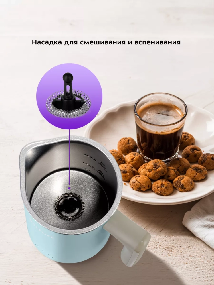 Капучинатор — идеальный выбор для тех, кому не хочется осваивать процесс самостоятельного взбивания молока, следить за температурой, добиваться вручную плотной однородной пены. Достаточно наполнить капучинатор нужным количеством молока и выбрать режим. Через несколько минут холодная или горячая молочная пена готова. Также в капучинаторе можно готовить какао, смешивать жидкости и подогревать молоко.