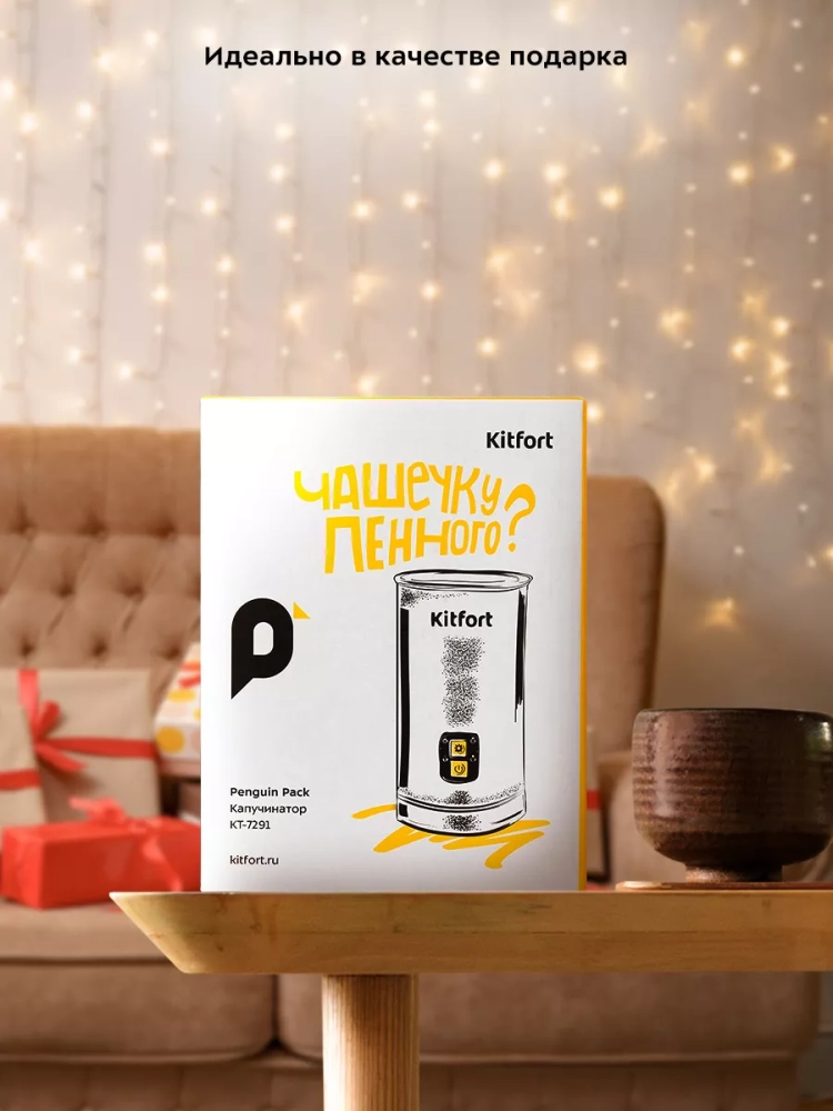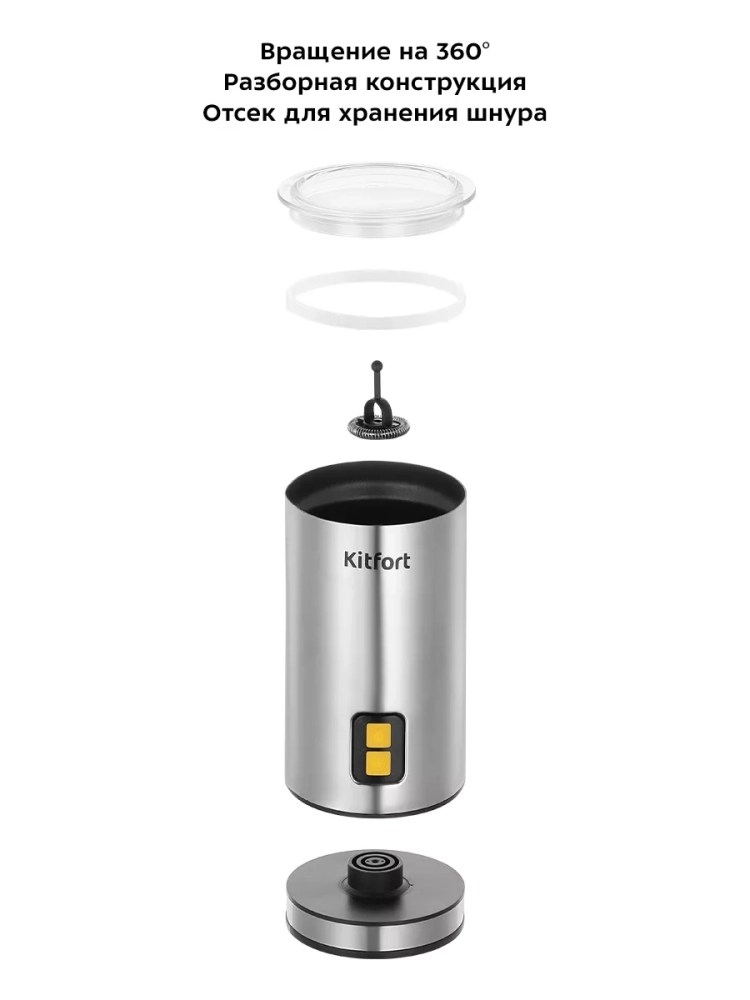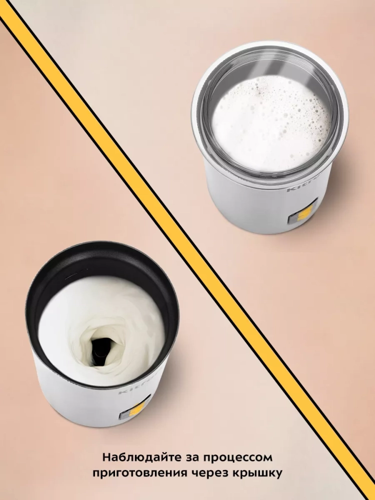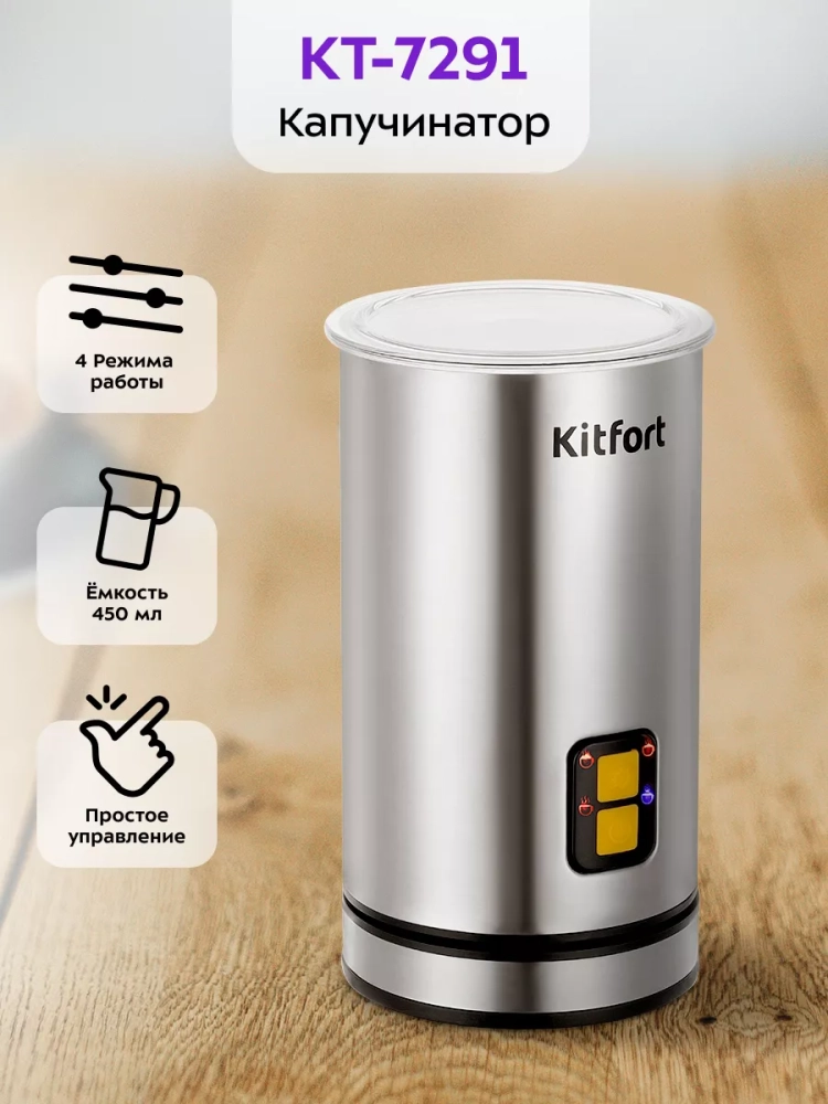 Капучинатор Kitfort КТ-7291 — это устройство для приготовления молочной пенки, используемой для напитков на базе эспрессо: капучино, латте и латте макиато. Прибор работает в четырех режимах: плотная и воздушная молочная пенка с нагревом, смешивание с нагревом и вспенивание без нагрева. Капучинатор автоматически отключается, когда процесс взбивания или смешивания выполнен. Также вы можете остановить процесс приготовления вручную. Управление осуществляется с помощью одной кнопки на корпусе. Через прозрачную крышку можно наблюдать за приготовлением. Подставка с центральным контактом дает возможность располагать на ней капучинатор в любом положении, обеспечивая вращение на 360°. Снизу имеется отсек для хранения шнура, в который можно смотать излишки шнура электропитания, чтобы он не мешал на столе. Капучинатор — идеальный выбор для тех, кому не хочется осваивать процесс самостоятельного взбивания молока, следить за температурой, добиваться вручную плотной однородной пены. Достаточно наполнить капучинатор нужным количеством молока и выбрать режим. Через несколько минут холодная или горячая молочная пена готова. Также в капучинаторе можно готовить какао, смешивать жидкости и подогревать молоко. Мощность: 500 Вт. Емкость: 500 мл. Рабочая емкость: 75–240 мл. Размер устройства: 109 х 101 х 187 мм. Вес нетто: 0,9 кг.
