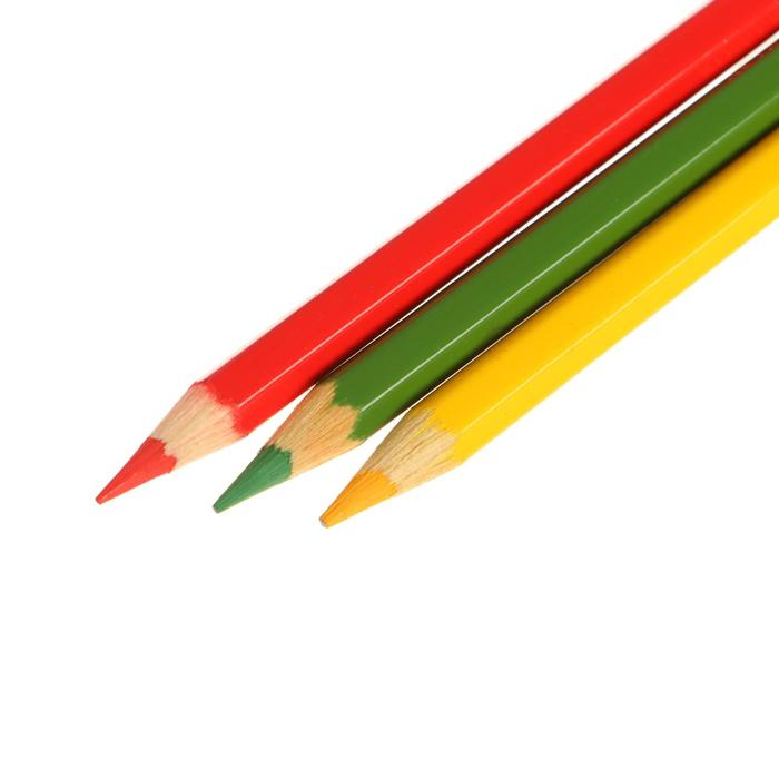 Карандаши двусторонние, заточенные, 12 штук, 24 цвета, корпус треугольный, деревянный, в картонной коробке
