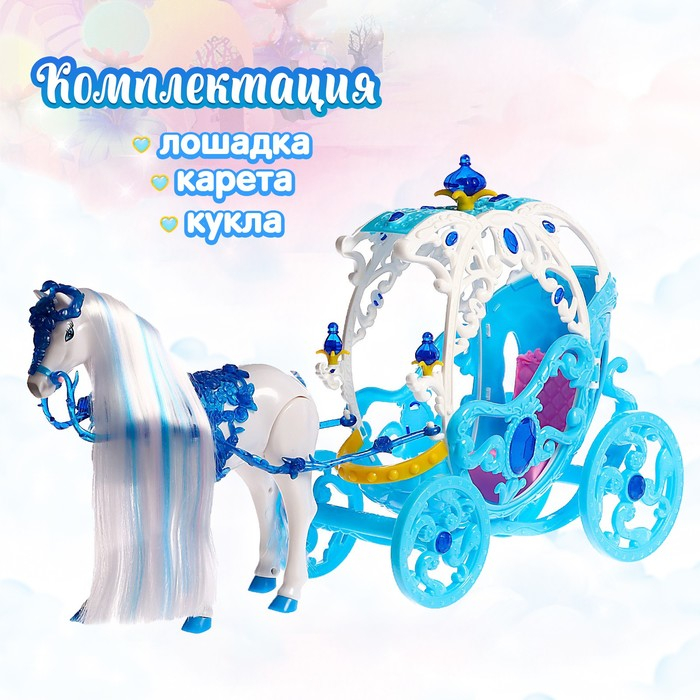 Каждая принцесса заслуживает свою карету! Особенно, если это сказочный набор с запряжённой лошадкой! В таком транспорте можно отправиться на бал или даже в волшебное путешествие.