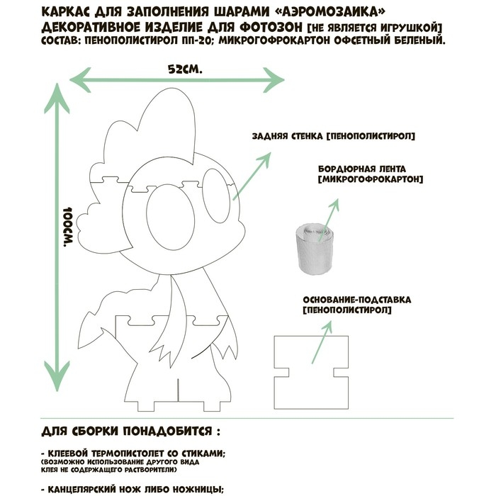 Каркас для аэромозаики фигура «Дракончик», белый, 1 шт.