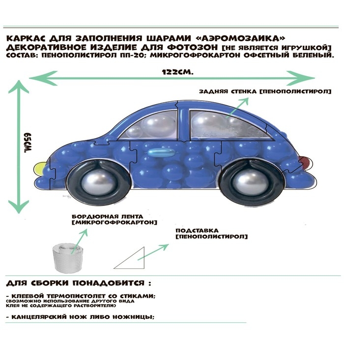Каркас для аэромозаики фигура «Машинка», белый, 1 шт.