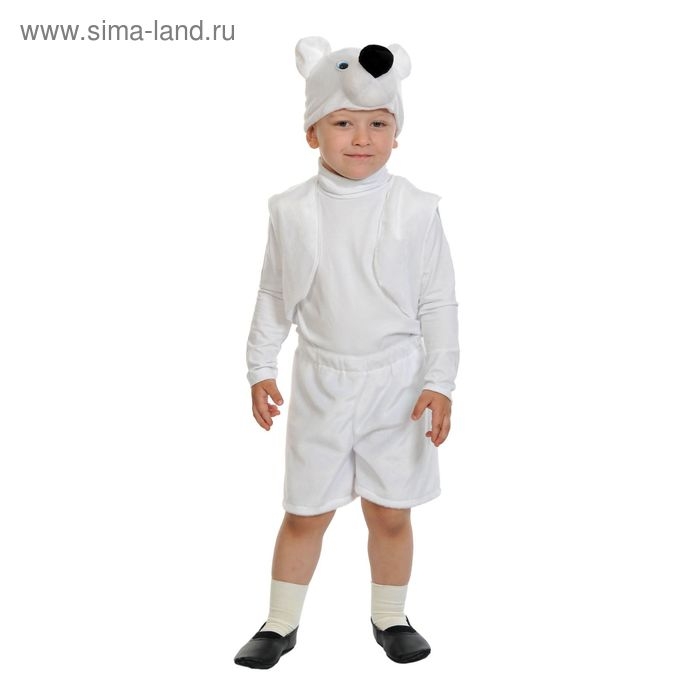 Карнавальный костюм «Белый мишка», плюш-лайт, жилет, шорты, маска, рост 92-116 см