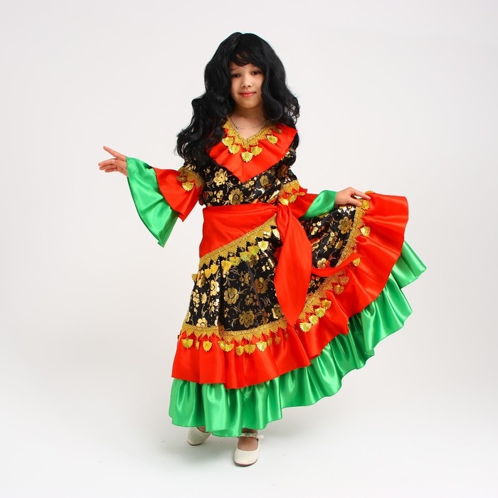 Карнавальный костюм «Цыганка», цвет красно-зелёный, р. 34, рост 122-128 см