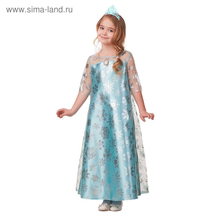 Карнавальный костюм «Эльза», сатин 2, платье, корона, р. 34, рост 134 см