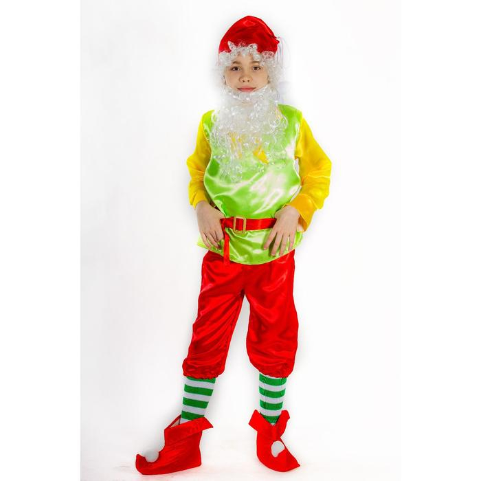 Карнавальный костюм «Гном», колпак, борода, рубашка, пояс, штаны, башмаки, р. 34, рост 134 см