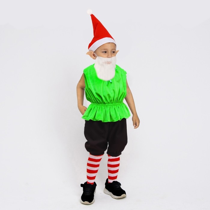 Карнавальный костюм «Гномик Кузя» жилет на кулисе, бермуды, борода, колпак, уши, гольфы, р-р 28, рост 98-100 см