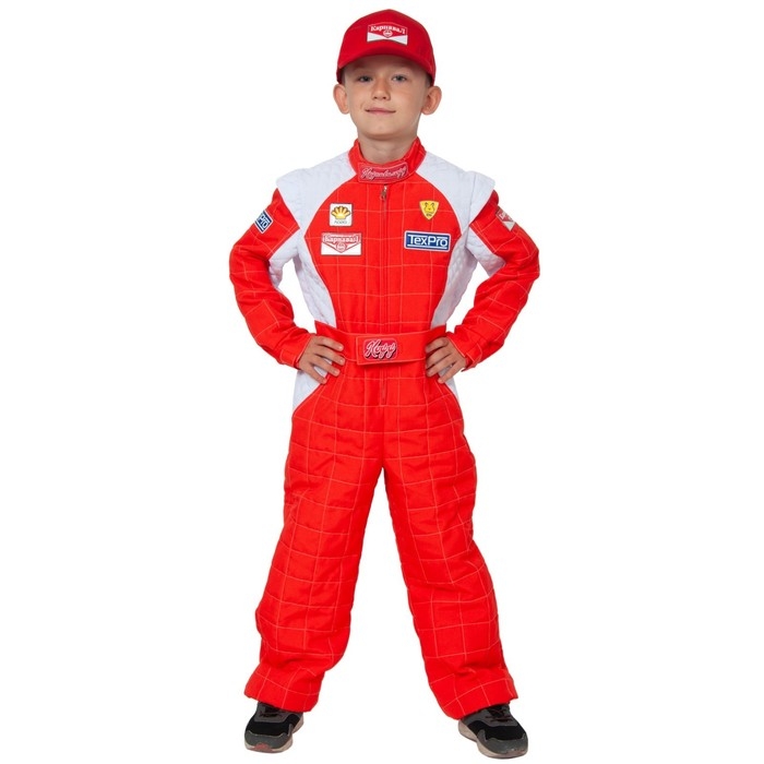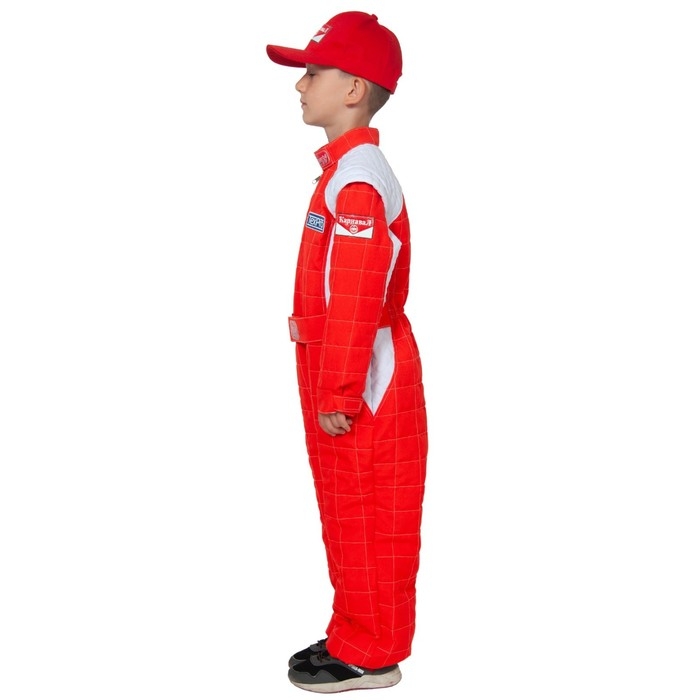 Карнавальный костюм «Гонщик», текстиль, комбинезон, кепка, р. 30, рост 116-122 см