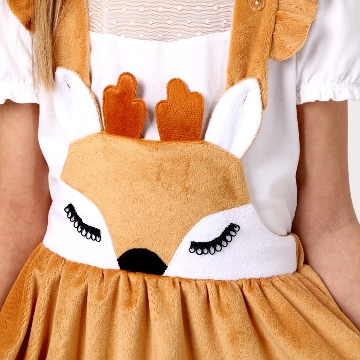Красивый карнавальный костюм олененка надолго запомнится детям благодаря своей яркости и выразительности. Образ олененка выполнен в мультяшном стиле, что привлекает внимание и вызывает улыбки у окружающих.