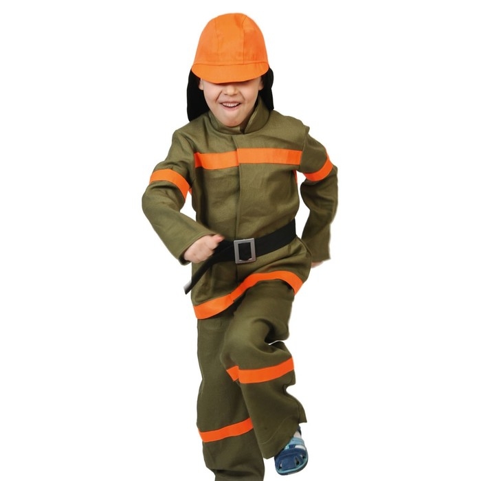 Карнавальный костюм «Пожарный»: куртка, брюки, ремень, шлем, р. 30–32, рост 116–122 см