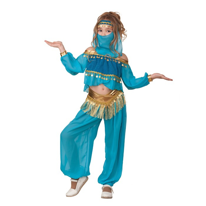 Карнавальный костюм «Принцесса Востока» — отличный выбор для тематических мероприятий и праздников. Костюм был вдохновлён образом принцессы из знаменитого мультфильма. Образ со звенящими элементами поможет девочке выглядеть стильно на любом мероприятии.