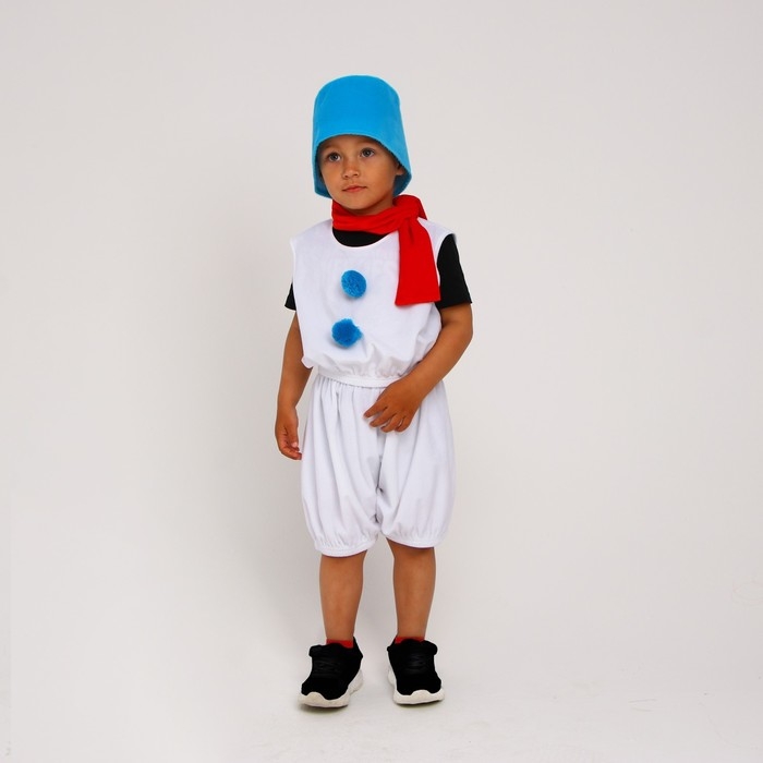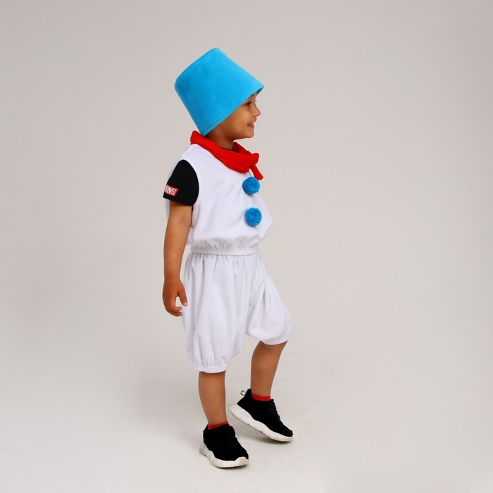 Карнавальный костюм «Снеговик» плюшевый: ведро, бермуды, жилет, шарф, ведро, р. 28, рост 98–104 см