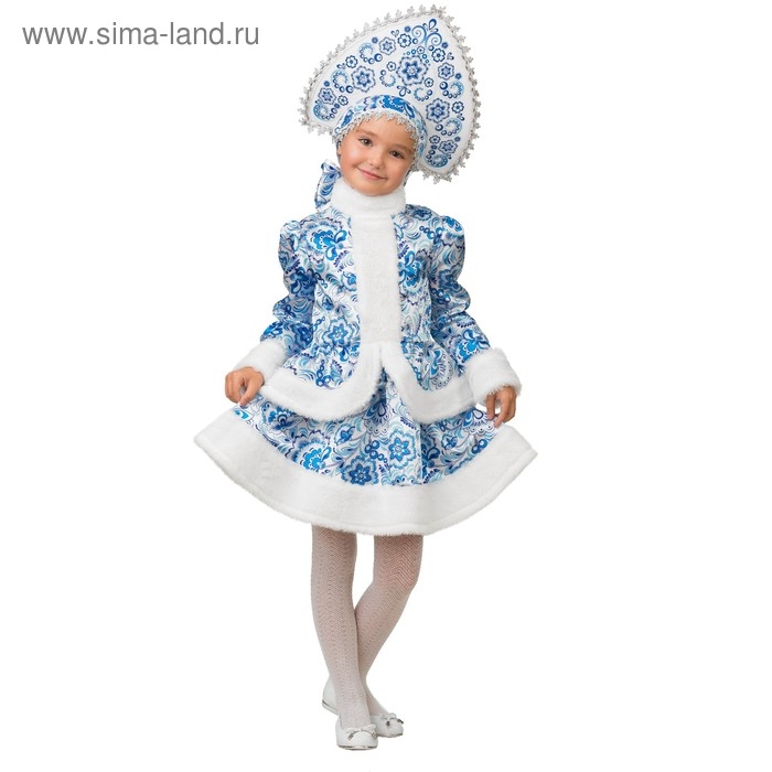 Карнавальный костюм «Снегурочка», бело-голубые узоры, размер 28, рост 110 см