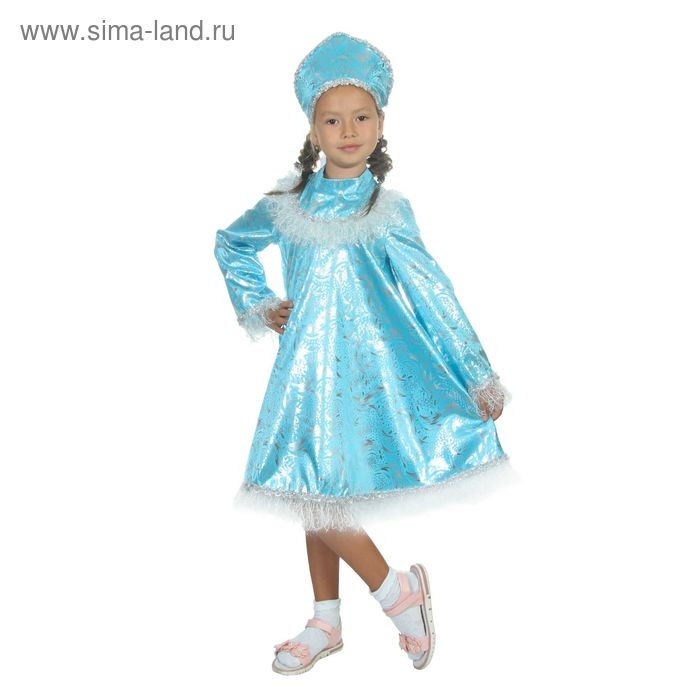 Карнавальный костюм "Снегурочка с кокеткой", атлас, кокошник, платье, р-р 34, рост 134 см