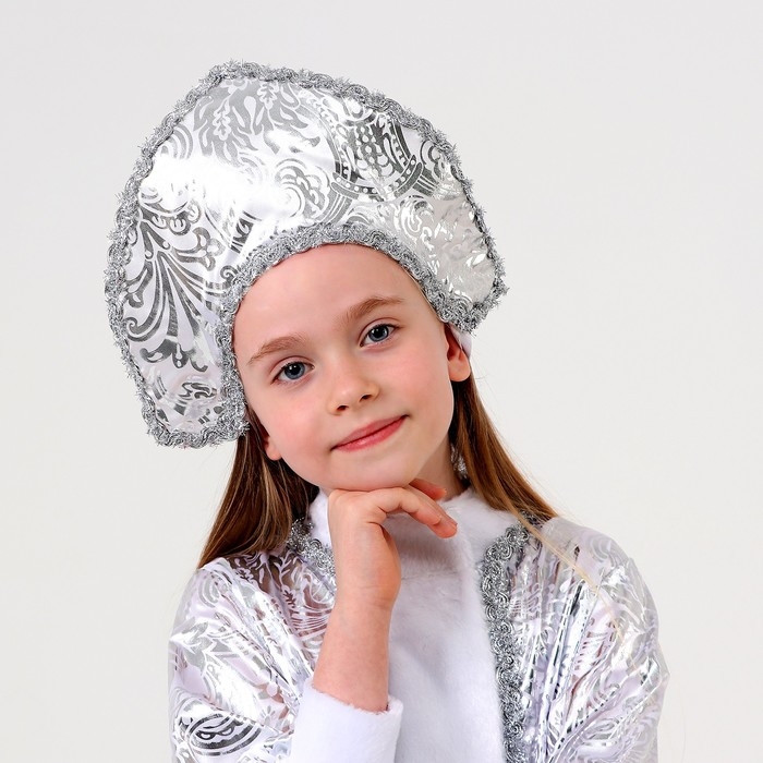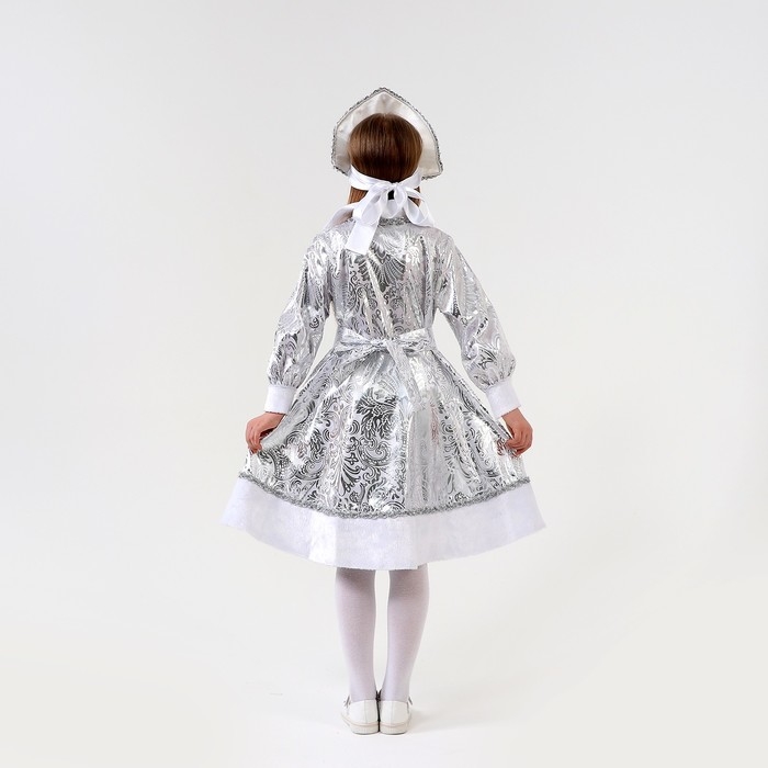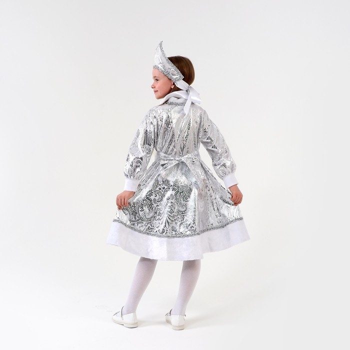 Карнавальный костюм «Снегурочка с узором», атлас, шуба, кокошник, рост 98-104 см
