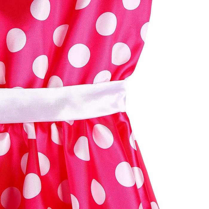 Карнавальный костюм «Стиляги 6», платье фуксия в белый горох, повязка, р. 34, рост 134 см
