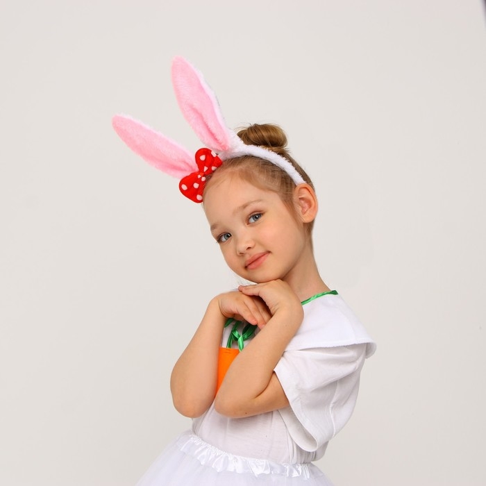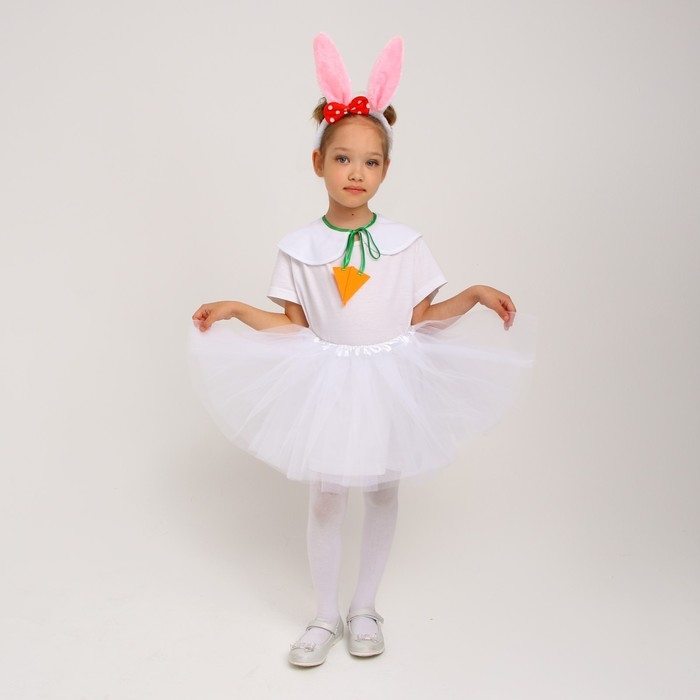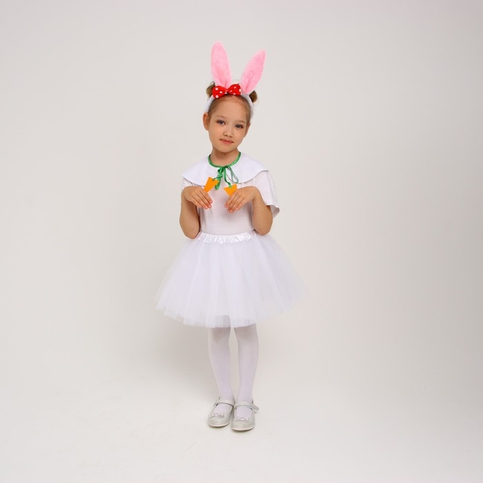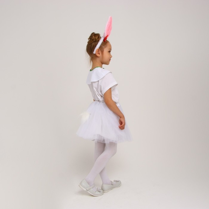 Карнавальный костюм «Зайка белая с ободком», рост 98-128 см