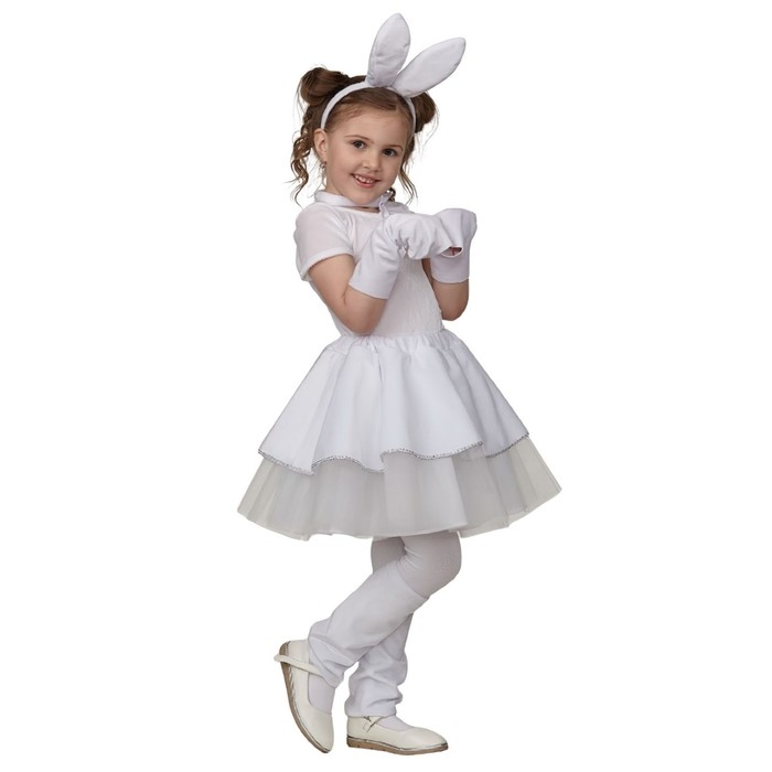 Карнавальный костюм «Зайка Буся», юбка, гетры, перчатки, бантик на шею, ободок, рост 110–134 см