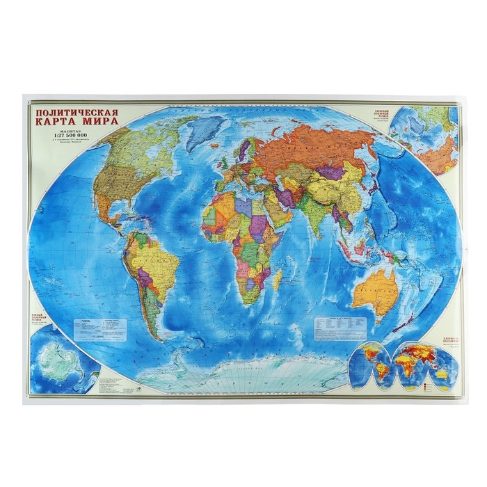 Карта настенная «Мир Политический», 101х69 см, 1:27,5 млн, ламинированная
