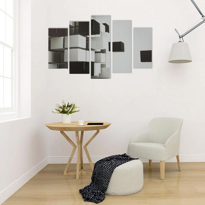 Картина модульная на подрамнике "3D квадраты" 2-25х52, 2-25х66,5, 1-25х80, 80*140 см визуально расширит пространство. Это идеальное решение для небольших помещений, коридоров и холлов.