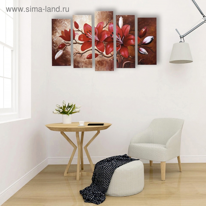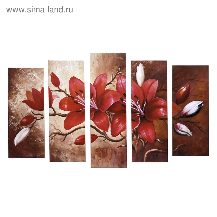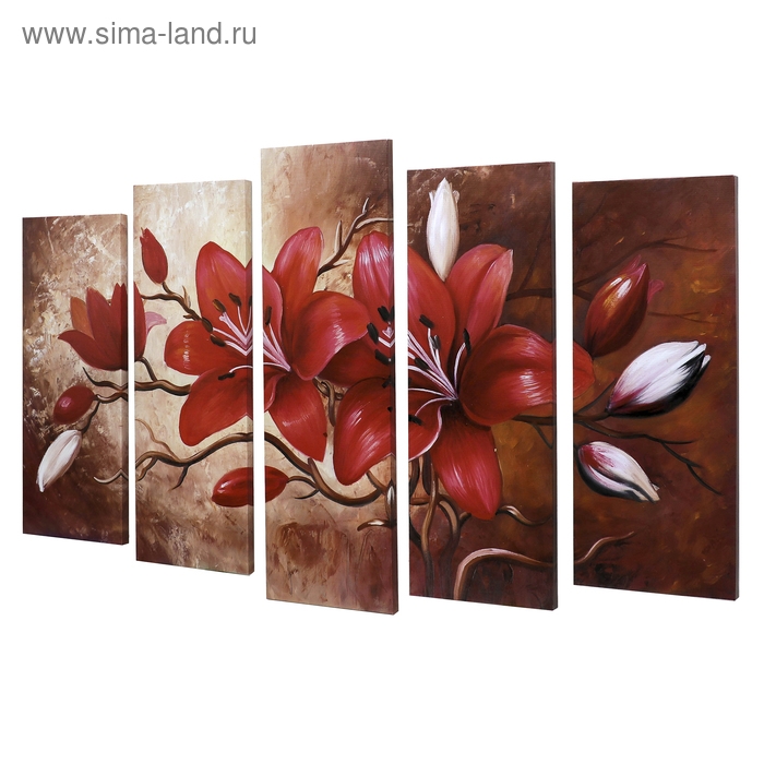 Картина модульная на подрамнике "Красные цветы" 125х80 см (2-25х63, 2-25х70, 1-25х80)
