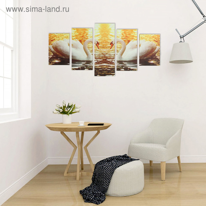 Картина модульная на подрамнике "Лебеди" 2-20х30; 2-20х40; 1-20х50, 50*110 см