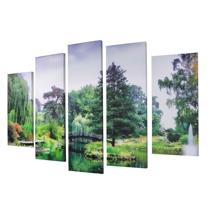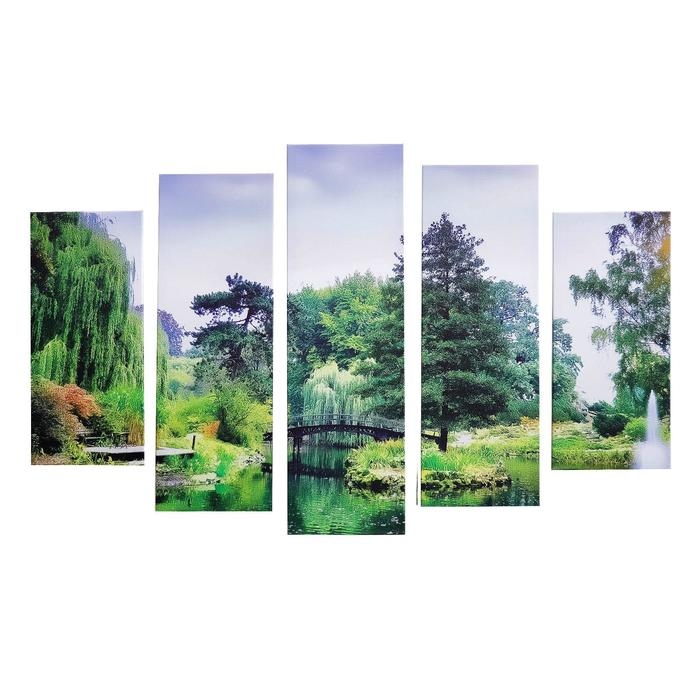 Картина модульная на подрамнике "Мостик в лесу" 115х80 см (80х23; 2-70х23; 2-53х23)