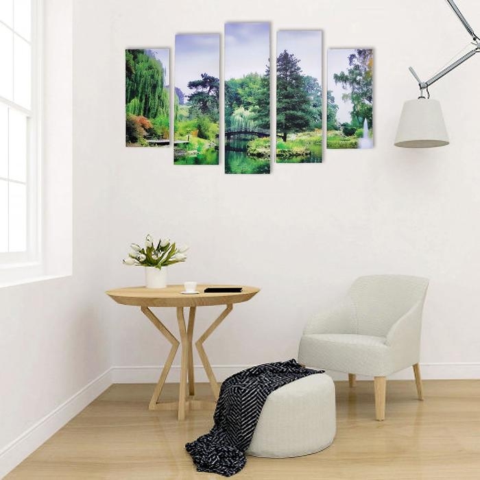 Картина модульная на подрамнике "Мостик в лесу" 115х80 см (80х23; 2-70х23; 2-53х23) визуально расширит пространство. Это идеальное решение для небольших помещений, коридоров и холлов.