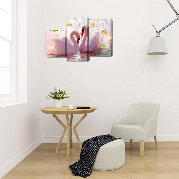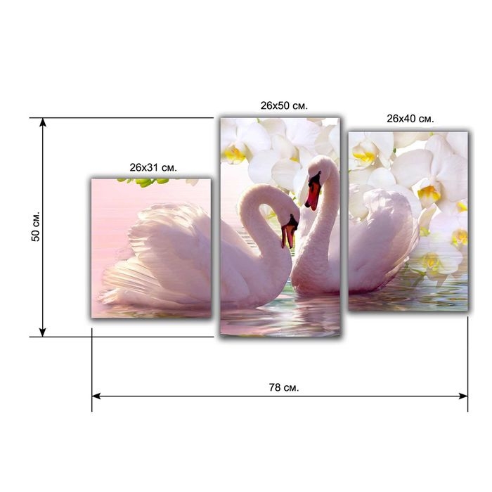 Картина модульная на подрамнике "Пара лебедей,белые цветы" 26х50; 26х40; 26х32, 50х80см