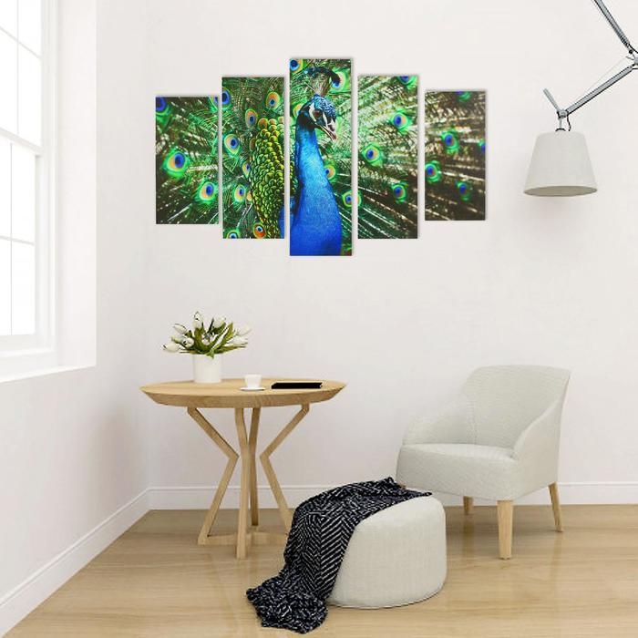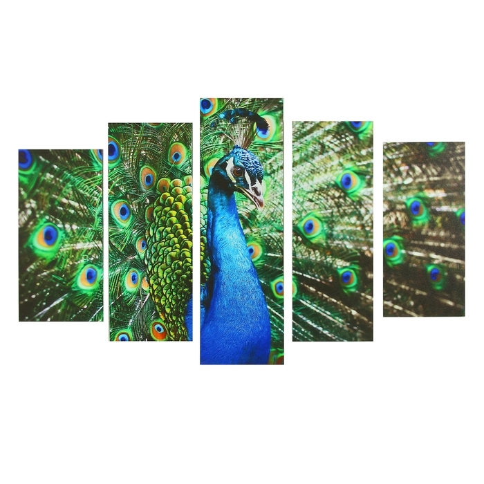 Картина модульная на подрамнике "Павлин" 2-25х52, 2-25х66,5,1-25х80, 80*140 см визуально расширит пространство. Это идеальное решение для небольших комнат, коридоров и холлов.