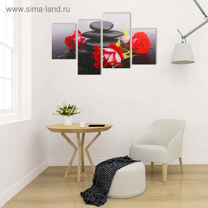 Картина модульная на подрамнике "Розы у камней" 2-30х45; 1-29,5х69; 1-34х69, 80*130см