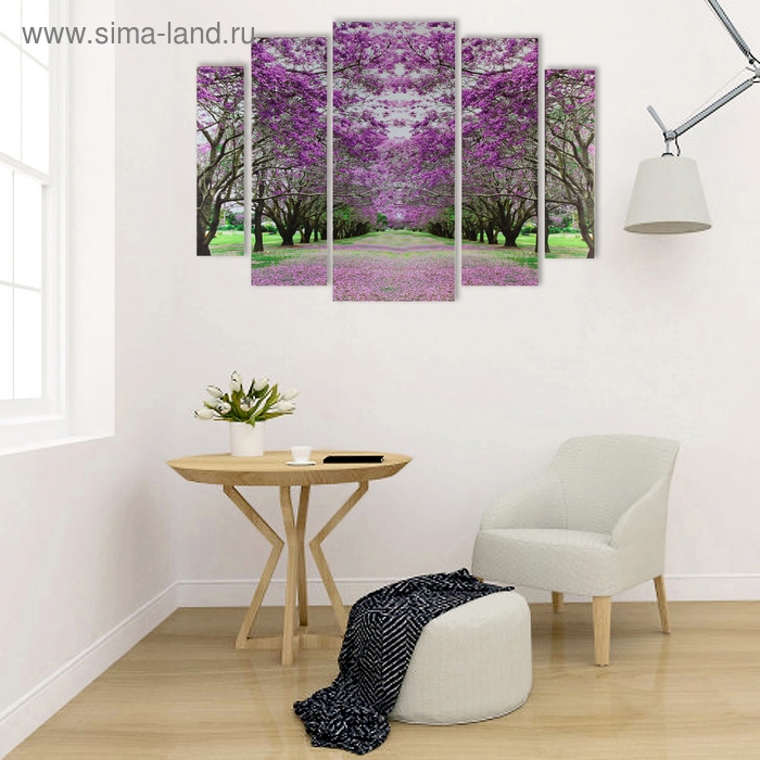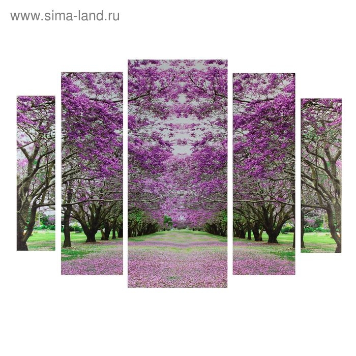 Картина модульная на подрамнике "Сакуровый сад" 2-14х53, 2-21х69,5 1-34х79; 80х118 см