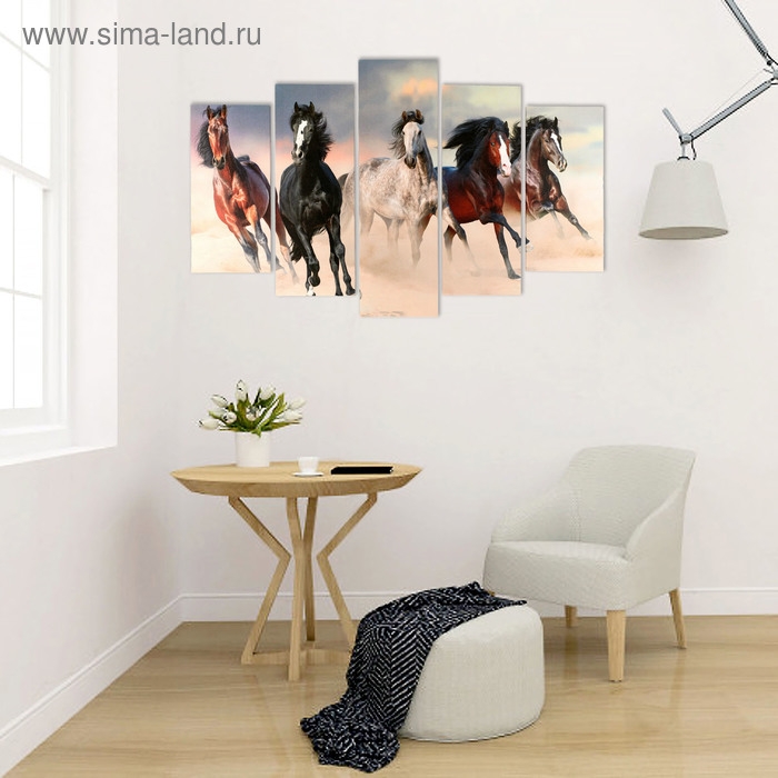 Картина модульная на подрамнике "Скакуны" (2-25х50, 2-25х67, 25х80 см) 125х80 см