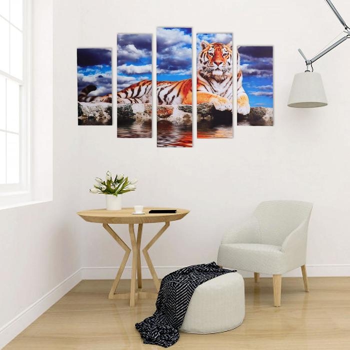 Картина модульная на подрамнике "Тигр" 115х80 см (80х23; 2-70х23; 2-53х23) визуально расширит пространство. Это идеальное решение для небольших помещений, коридоров и холлов.