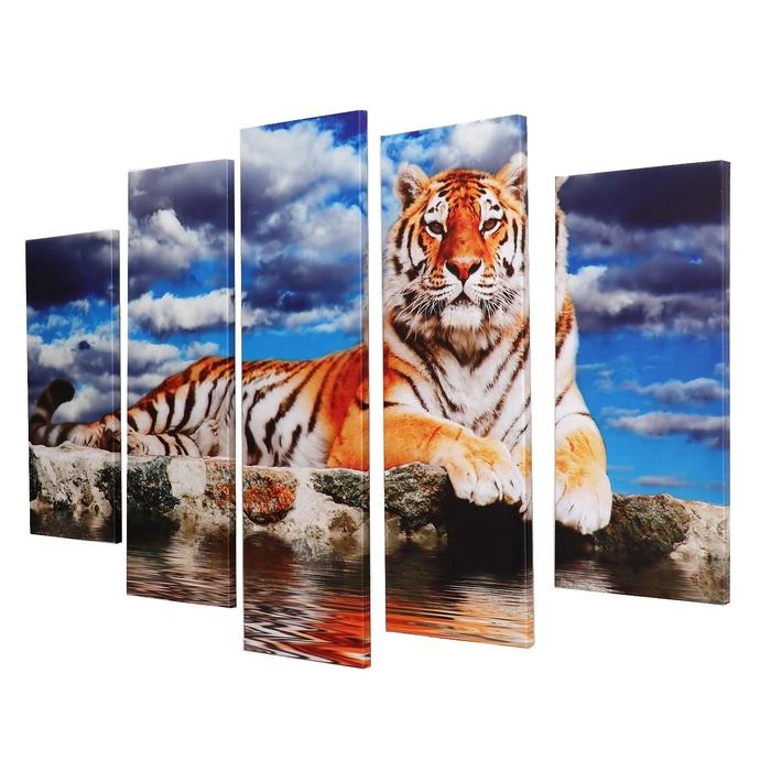 Картина модульная на подрамнике "Тигр" 115х80 см (80х23; 2-70х23; 2-53х23)