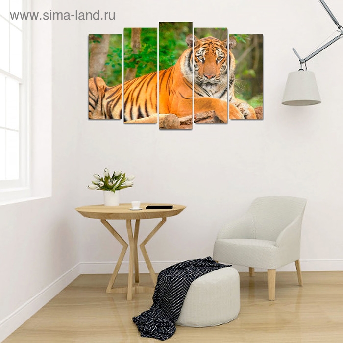 Картина модульная на подрамнике "Тигр" (2-25х63; 2-25х70; 1-25х80) 125х80см визуально расширит пространство. Это идеальное решение для небольших комнат, коридоров и холлов. Дополните убранство стильным интерьерным акцентом!