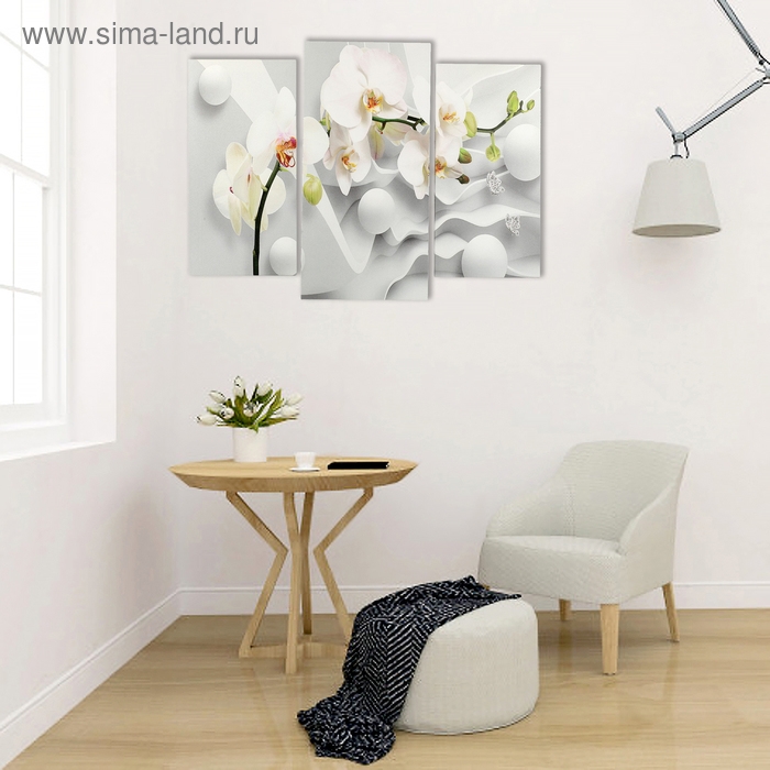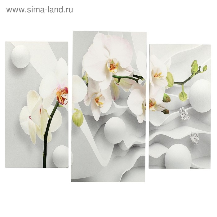 Картина модульная на подрамнике "Ветка Орхидеи" (2-25х50, 30х60 см) 80х60 см