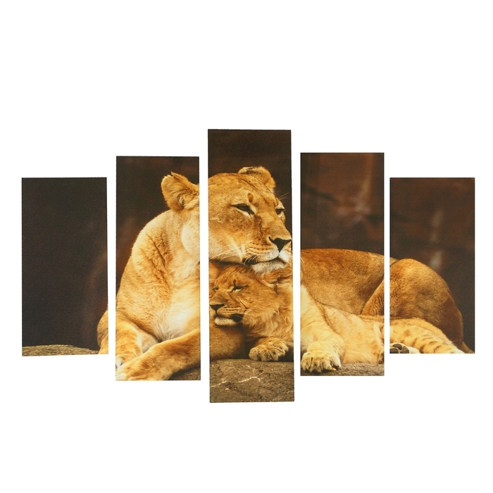 Картина модульная на подрамнике "Звериная нежность" 2-25х52, 2-25х66,5,1-25х80, 80*140 см
