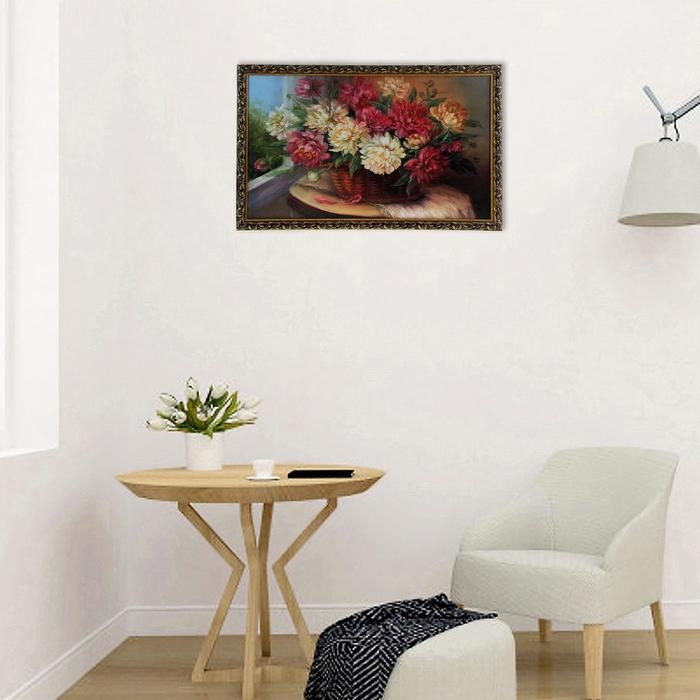 Картина "Пионы в корзине" 67х107 см рамка микс