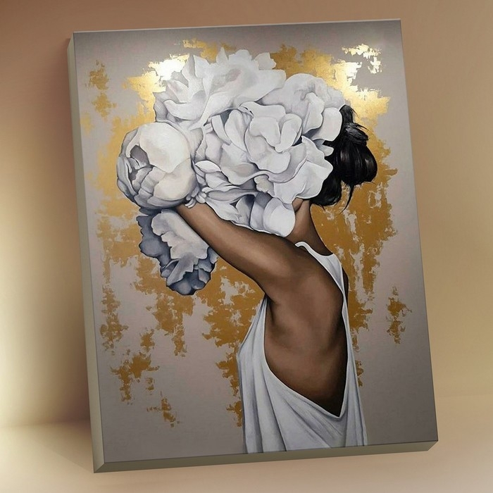 Картина по номерам «Девушка с пионами», 17 цветов, с поталью, 40 × 50 см