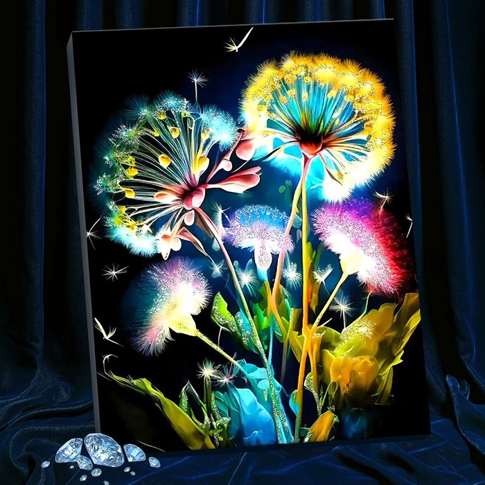 Картина по номерам с кристаллами из хрусталя, 40 × 50 см «Одуванчики» 28 цветов