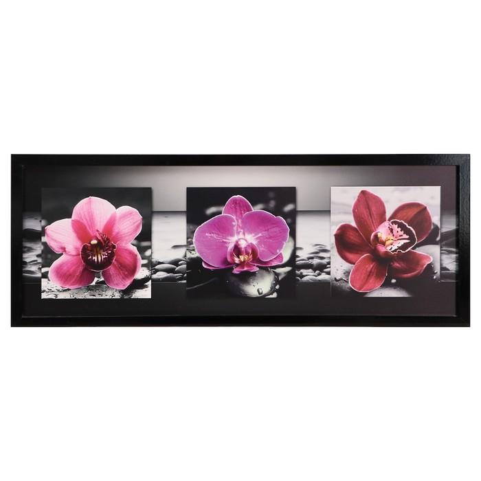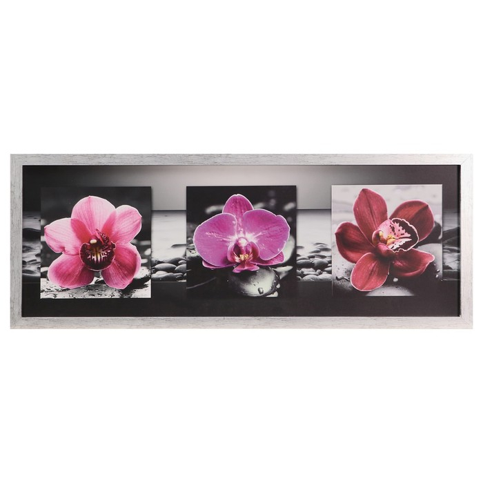 Картина "Тёмно-розовые орхидеи" 42х107 см рамка микс