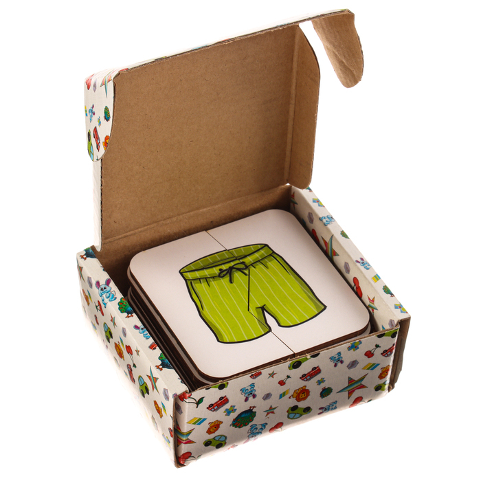 - В комплекте есть коробка, в которой удобно хранить картинки-половинки.