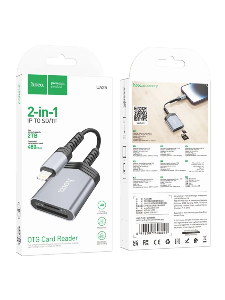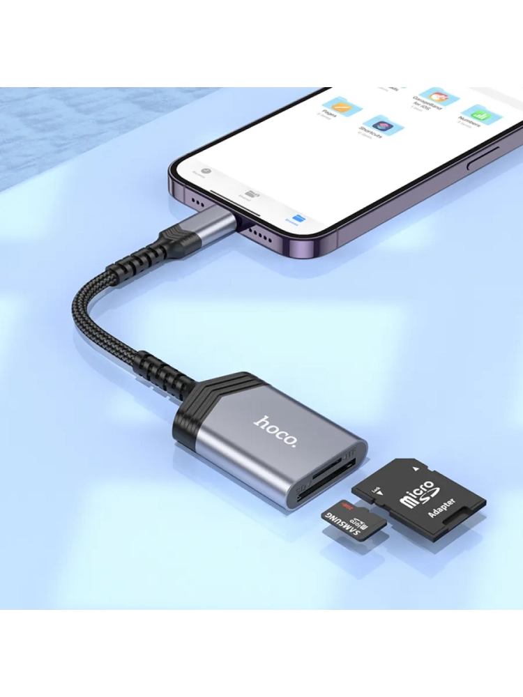 Картридер 2 в 1, Lightning, UA25, HOCO, поддержка TF/SD