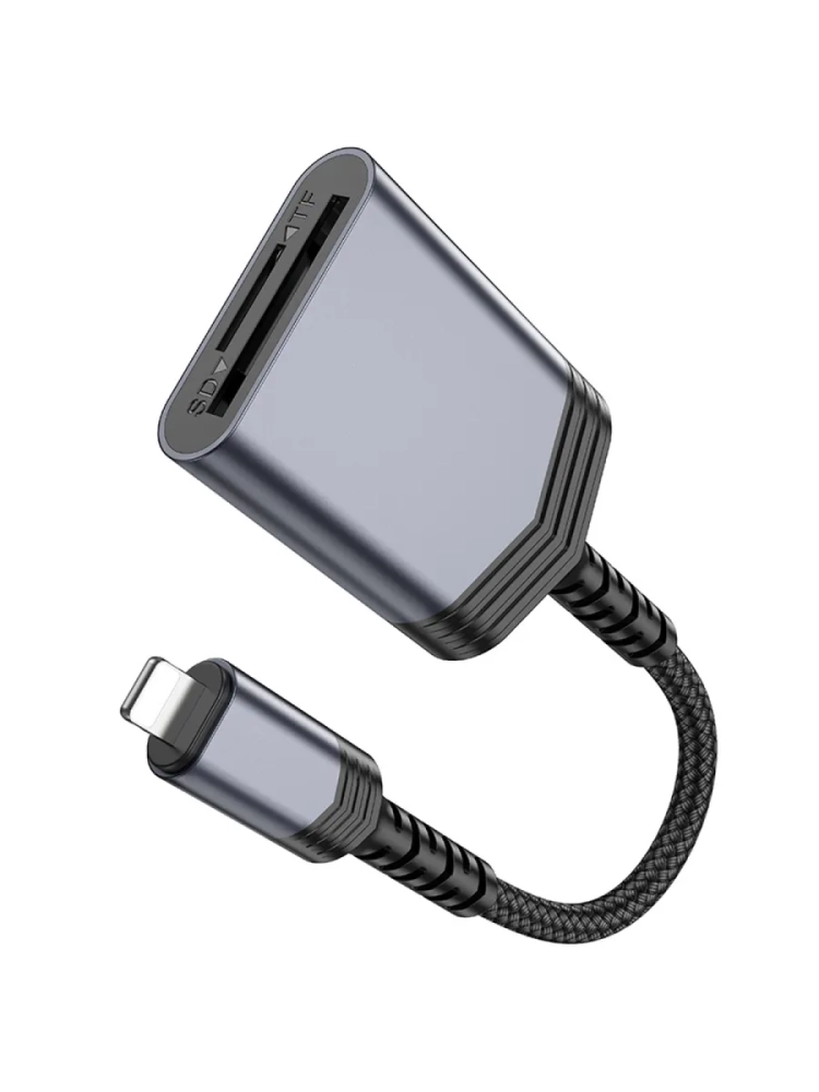 UA25 Картридер 2 в 1, Lightning, поддержка TF/SD карт, с проводом, серый