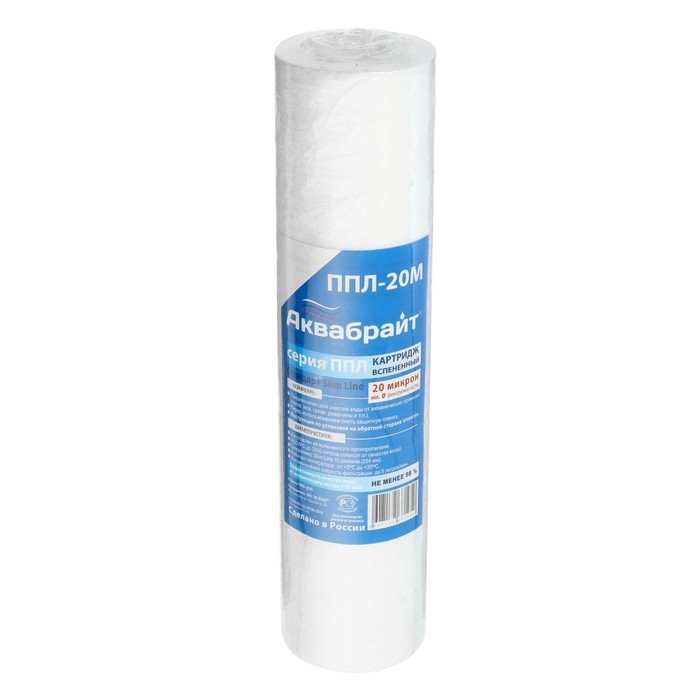 Картридж "Аквабрайт" ППЛ-20 М, 10" SL, полипропиленовый, для холодной воды, 20 мкм