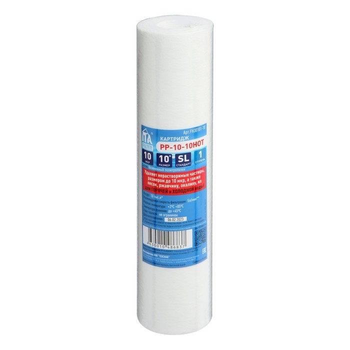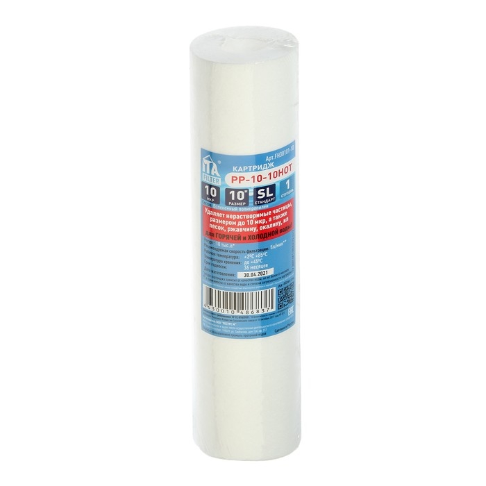 Картридж ITA Filter РР-10 HOT- 10, 10" SLIM LINE изготовлен из волокон прессованного полипропилена. Удаляет песок, ржавчину, ил, окалину, взвешенные частицы.