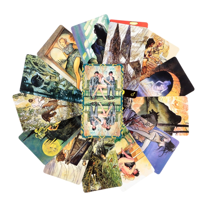 Мило Манара - мастер эротической иллюстрации, создают сны, истории, желания, кошмары, повседневную жизнь, переносит нас в свое чувственное измерение, отдавая дань уважения женскому телу, в этой колоде являющемуся символом Вселенной.