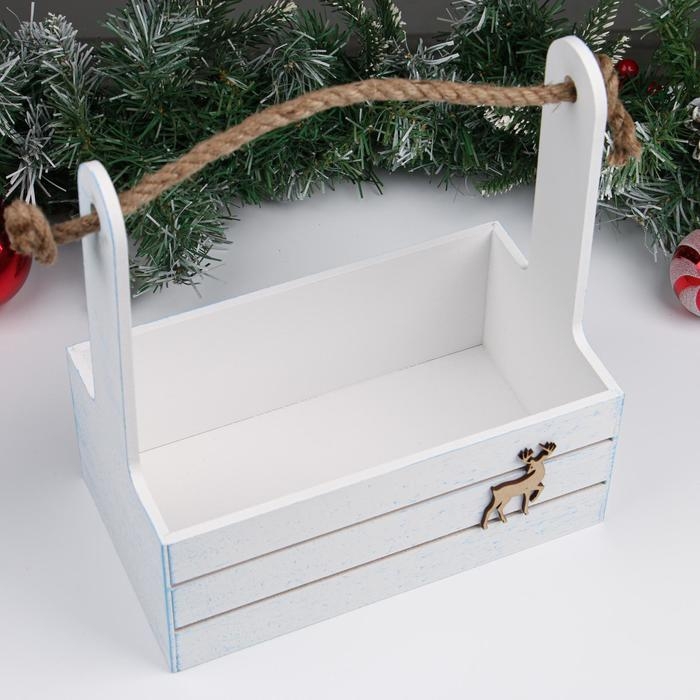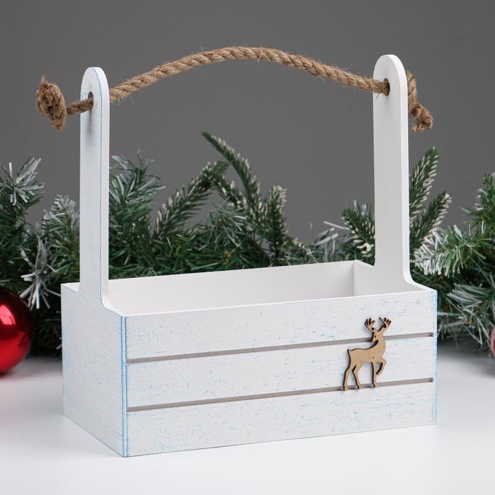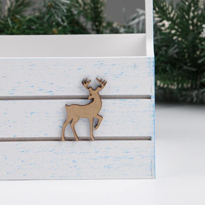Кашпо деревянное 25х15х30 см, "Новый год. Олень", белый